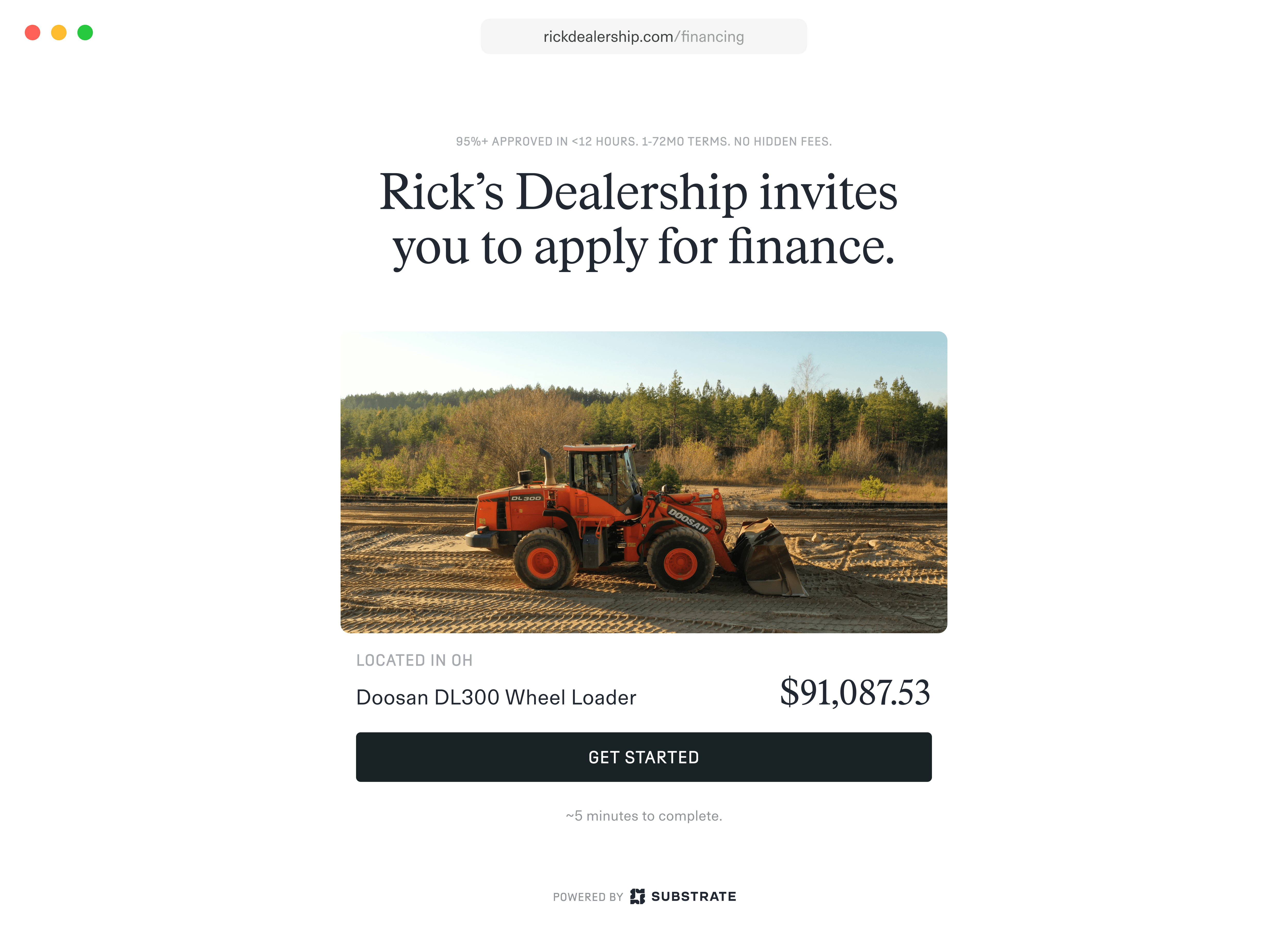 Customers apply through a clean, branded online experience.